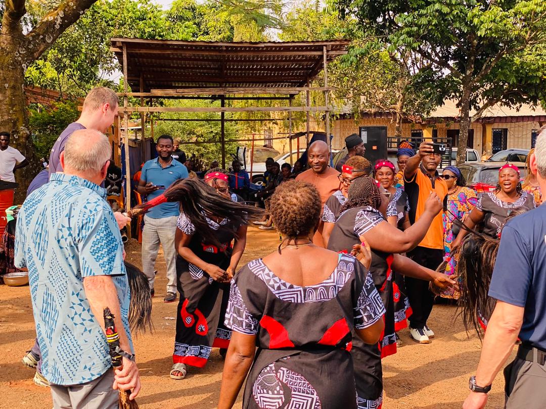 The Mayor of Bamenda III Council welcomes German partners. It all took place at the Mayor's residence where Council authorities, quarter heads, Community representatives and some dance groups came together to give a warm reception to the partners. These partners came for the optimization of the Bamenda III Council water project; a great move aimed at increasing sustainability and water circulation across the Municipality. Work is currently going on at the water project site.